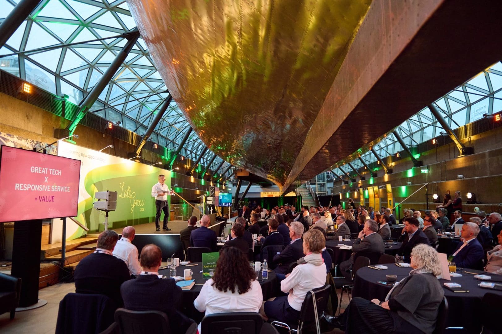 The “Let’s Grow” conference took place aboard the iconic Cutty Sark, welcoming over 150 delegates for a full day of insight and connection. Supported by high-quality AV production, the programme featured engaging presentations and a captivating keynote focused on industry growth and emerging trends.